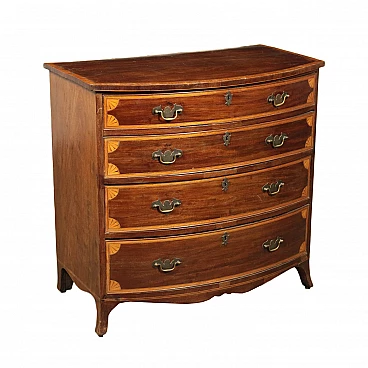 Sorretto da piedini mossi, sul fronte convesso sono presenti quattro cassetti di altezza decrescente mano a mano che ci si avvicina al piano. In mogano, presenta intarsi a ventaglio negli angoli dei cassetti in acero, filettature in acero ed ebano; gli interni sono in rovere.