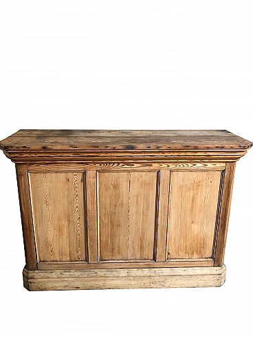 Banco da negozio antico in rovere naturale con ripiani e cassetto. Di provenienza nord europea, è in condizioni molto buone.