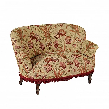 Divanetto risalente alla seconda metà del XIX secolo, sorretto da piedini in noce dei quali quelli anteriori torniti. Imbottito e foderato da un arazzo con motivi floreali di gusto Liberty.