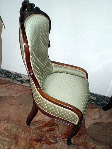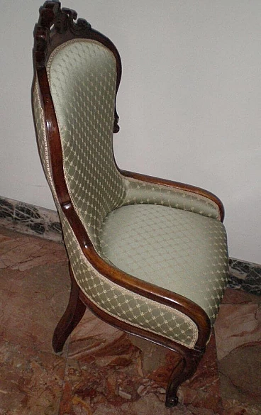 Poltroncina da salotto Luigi Filippo in noce e tessuto, '800