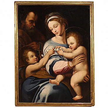 Sacra famiglia con San Giovannino, dipinto italiano olio su tela, '600