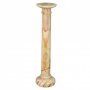Colonna italiana del XX secolo. Scolpita in onice di bella linea e piacevole arredamento. Colonna costruita in due pezzi separabili per facilitarne lo spostamento e l'inserimento in casa. Oggetto di ottima proporzione facilmente inseribile in diversi punti della casa, ideale per esporre sculture, bronzi o ceramiche. Piano di appoggio utile dal diametro di 25 cm circa. Colonna di ottima solidità e stabilità in buono stato conservativo. Senza rotture o segni di interventi di restauro.