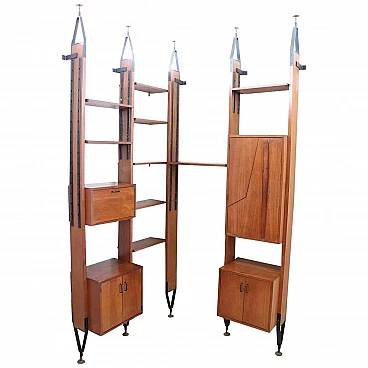 Bellissima grande libreria modulare nello stile di Franco Albini modello cielo / terra tipicamente anni '60. Struttura in metallo ed elementi lignei impiallacciati in teak. Presentata ad angolo ma è possibile comporla anche lineare a seconda delle vostre esigenze. Necessita di piccolo restauro in alcuni punti per danni all'impiallacciatura. Vi consigliamo di guardare bene in dettaglio tutte le foto allegate. Proposto ad un ottimo prezzo trattabile vi invitiamo ad inviarci le vostre proposte di acquisto le valuteremo con piacere. Lunghezza: un lato 140 cm, l'altro 120. Altezza 275 - Imballo professionale, spedizioni assicurate con corrieri, consegna su appuntamento solo piano strada, no facchinaggio ai piani. Attenzione questo articolo sarà spedito smontato, il montaggio non è incluso nella consegna.