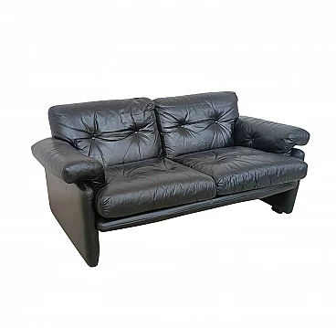 Design di Afra e Tobia Scarpa per produzione B&B Italia, divano 2 posti Coronado in pelle nera. In condizioni molto buone, con piccoli e inevitabili segni del tempo ma anche con la giusta patina che ne aumenta la bellezza.