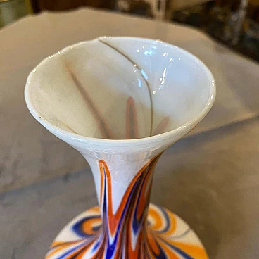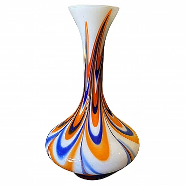 Vaso in vetro opalino arancione e blu di Carlo Moretti, anni '70