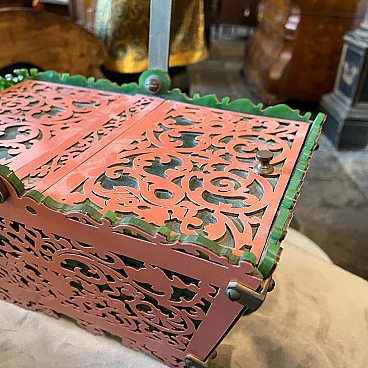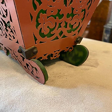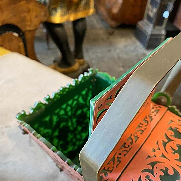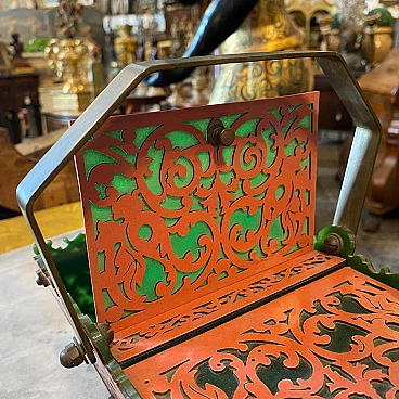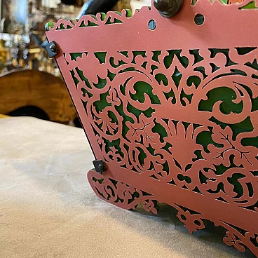 Cestino in plexiglass verde e rosa e ottone, anni '60