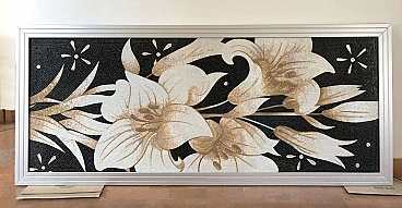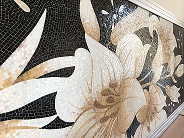 Mosaico floreale in vetro, marmo e madreperla