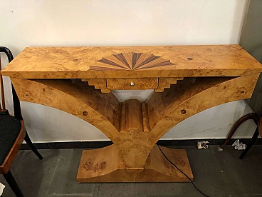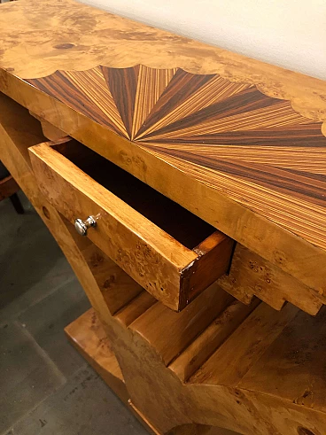 Consolle Art Decò in radica di betulla e palissandro, anni '30