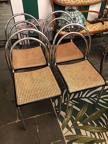 4 Sedie con seduta in paglia nello stile di Willy Rizzo, anni '70