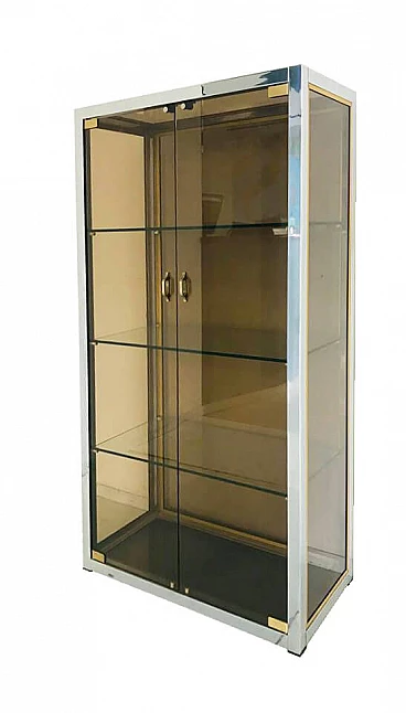 Vetrinetta in ottone e vetro fumè, stile Romeo Rega, anni '70