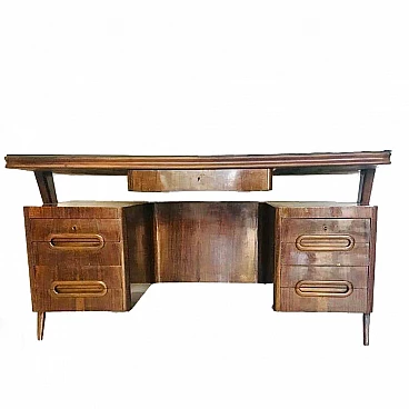 Scrivania in legno con cassetti e piano in vetro, anni '60