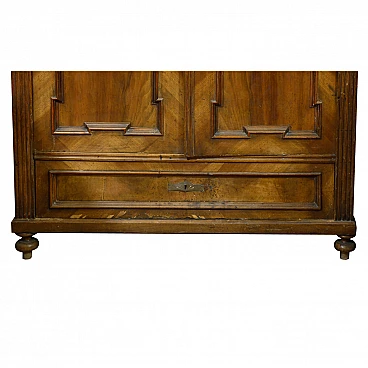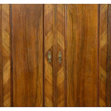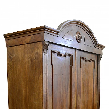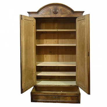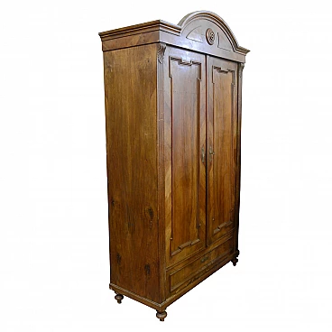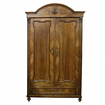 Armadietto a due ante, 1890, con parti in massello e parti impellicciate in noce. Cornice del cappello sagomata e decorata con ovale centrale, lesene scanalate e decorate da elemento intagliato, sportelli arricchiti da cornici interne applicate e piedini torniti. Il mobile, corredato anche di 5 ripiani in legno di abete massello, rispecchia tutte le caratteristiche del mobile Italiano della fine dell'800 e potrebbe essere utilizzato anche come armadietto dispensa. Buone condizioni, presenta segni di usura e del tempo, ma comunque utilizzabile.