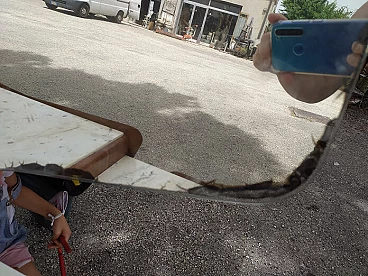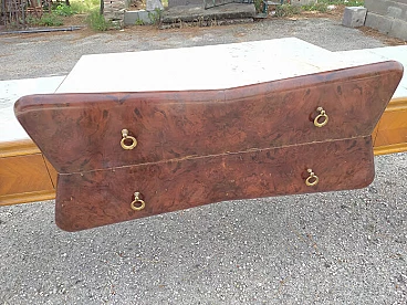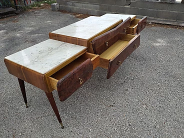 Toletta con specchio in compensato, noce, marmo di Carrara e metallo di Paolo Buffa, anni '60