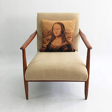 Il tessuto misto cotone del copricuscino avvolge un cuscino in piuma d'oca nuovo di zecca. Anche se il cuscino in sé è nuovo, la fodera è un pezzo di memorabilia del Louvre degli anni '70 - ma nonostante la sua età ha mantenuto bene tutti i suoi colori.