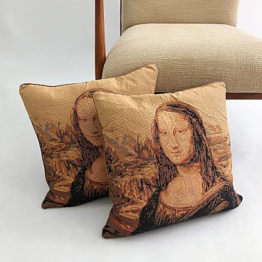 La Monna Lisa è probabilmente l'opera d'arte più famosa del mondo, e questi comodi cuscini ricreano fedelmente il capolavoro di Leonardo da Vinci in caldi gialli, marroni e arancioni.