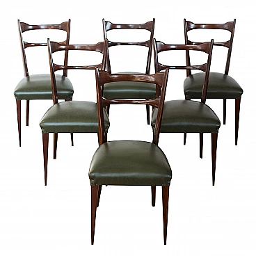 Set di 6 sedie in faggio ebanizzato con seduta rivestita in skai verde, nello stile di Paolo Buffa. Modernariato italiano anni ‘40