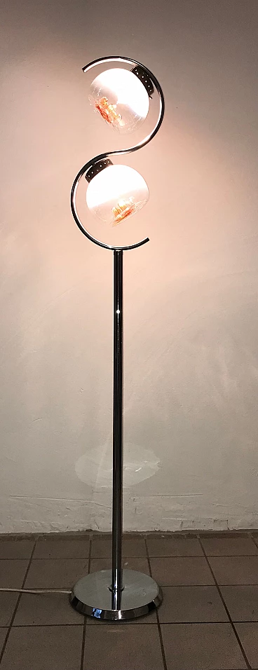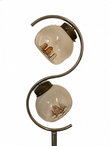Lampada da terra in metallo e vetro di Gaetano Sciolari, anni '70