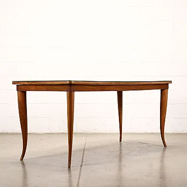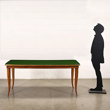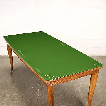 Tavolo, legno di Faggio, piano in legno con vetro retro trattato.