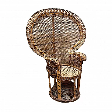 Poltrona Peacock in vimini, anni '70