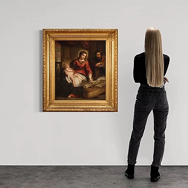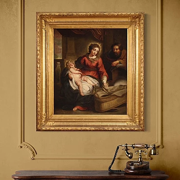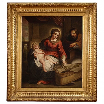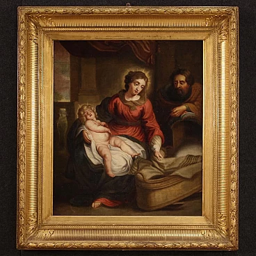 Sacra Famiglia, dipinto fiammingo olio su tela, '700