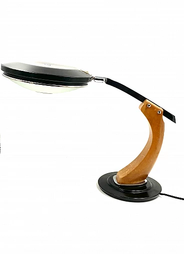 "Presidente" lampada da scrivania executive nera. Prodotto da Fase, Madrid, Spagna, circa 1960. Doppia luce. Asta di legno. Condizioni: eccellenti, coerenti con l'età e l'uso. Pochi segni sull'alluminio laccato. Funzionante. Spina europea. Lampadine E27.