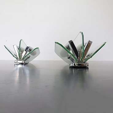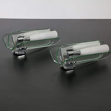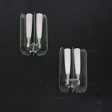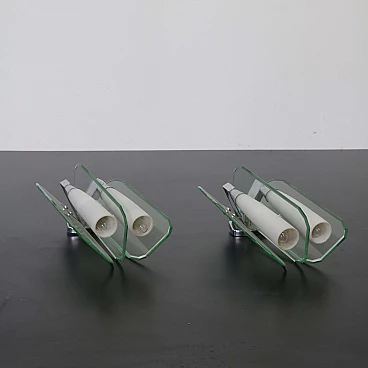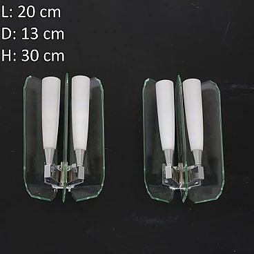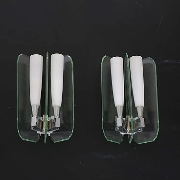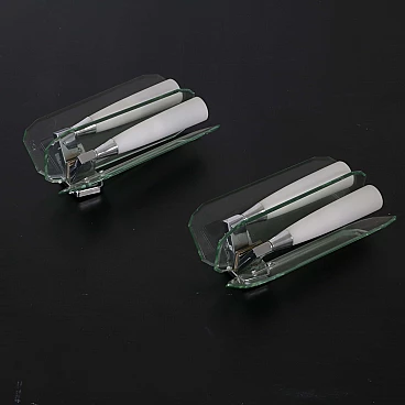 Coppia di applique in vetro verde nilo e vetro opalino, anni '70