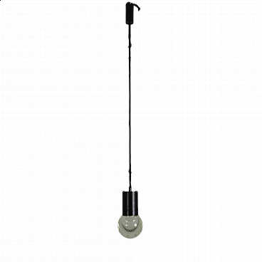 Lampada a sospensione con struttura in metallo laccato e diffusore in vetro a bollicine. Produzione Seguso, Italia, 1950 ca. Si consiglia la sostituzione dell'impianto elettrico