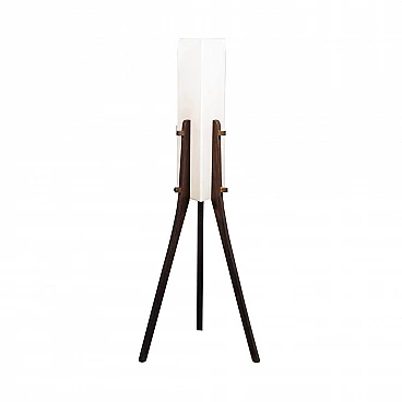 Lampada da terra stile scandinavo in legno e plexiglass, anni '70