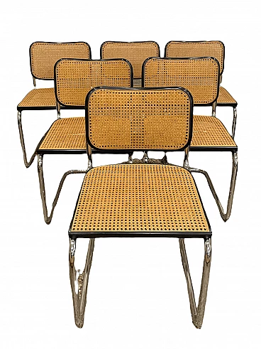 6 Sedie Cesca in acciaio, legno e paglia di Marcel Breuer per Gavina, anni '60