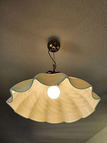 Lampada da soffitto in vetro di Murano bianco e blu di De Majo, anni '60