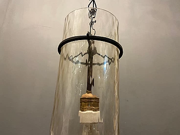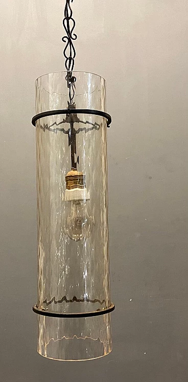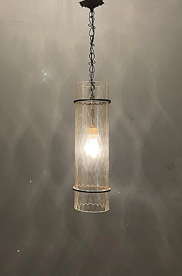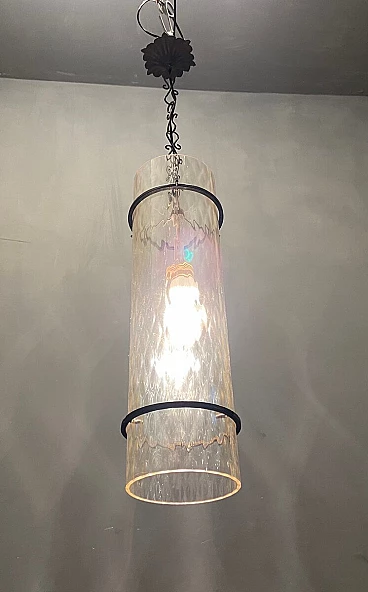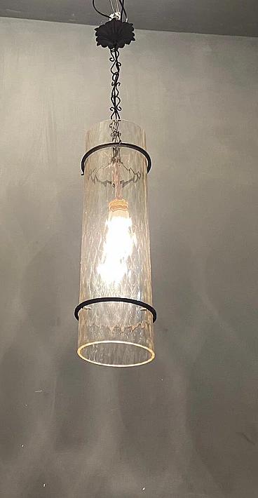 Lampadario da soffitto in ferro battuto e vetro di Murano, anni '50