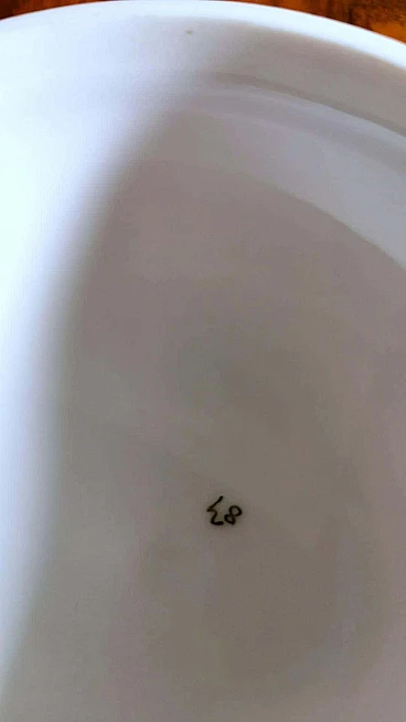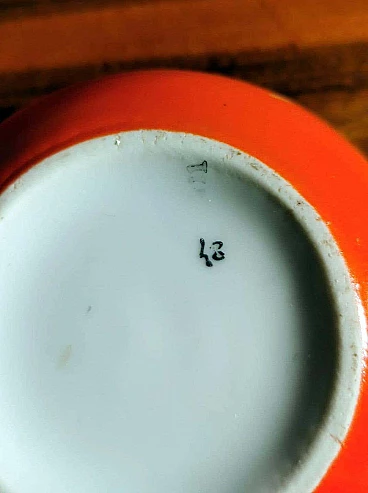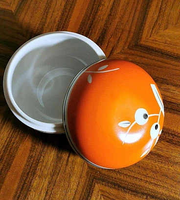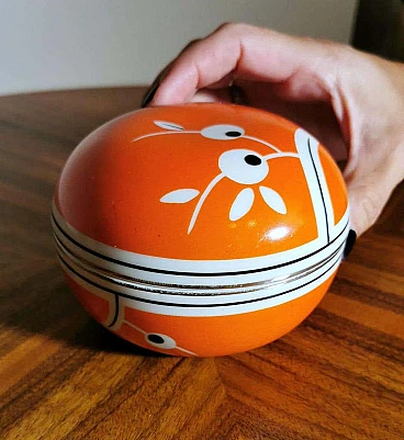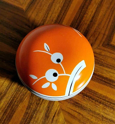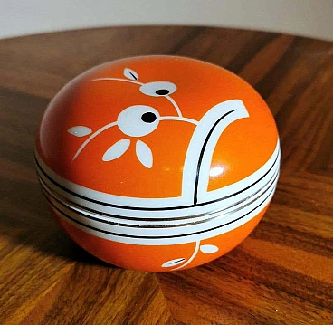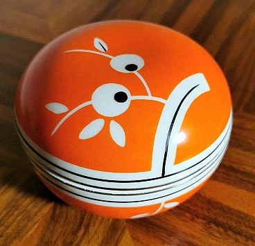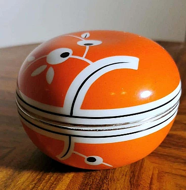Scatola rotonda in porcellana arancione e bianca, anni '40
