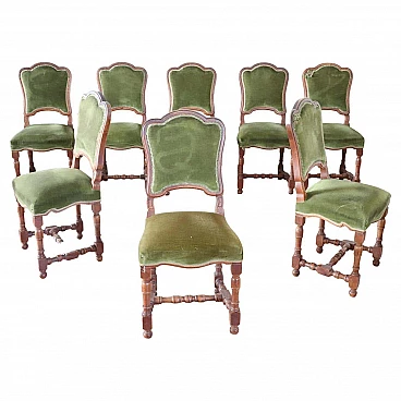 8 Sedie antiche in noce rivestite in velluto, fine '800