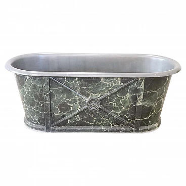 Bellissima rara vasca da bagno in piena epoca impero primi anni del secolo XIX realizzata completamente in lamiera zincata e dipinta a finto marmo. Questa tipologia di vasca nasceva per uso militare da campo destinata solo a militari di alto grado. Buone condizioni nessuna rottura da segnalare presenti possibili segni di usura soprattutto nell'interno. Vi consigliamo comunque di guardare bene in dettaglio tutte le foto allegate. Proposta ad un'ottimo prezzo comunque trattabile vi invitiamo ad inviarci le vostre proposte di acquisto le valuteremo con piacere. Imballo professionale spedizioni assicurate in tutto il mondo con corrieri consegna solo piano strada. Installazione non prevista.