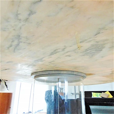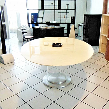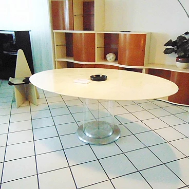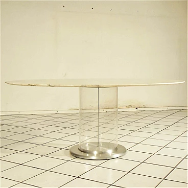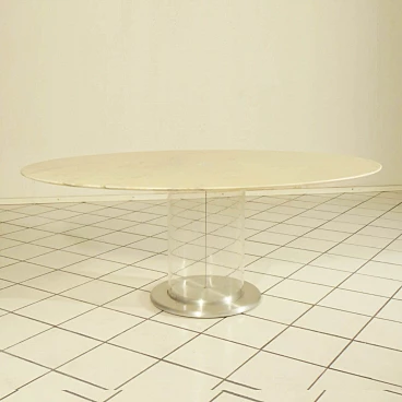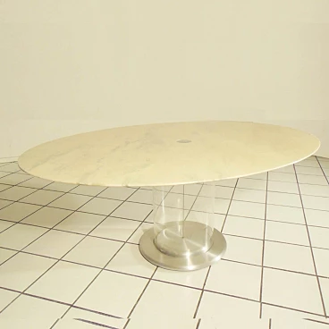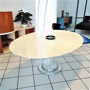 Tavolo "Ellisse" marmo bianco con base in plexiglas e fusione di alluminio , di Claudio Salocchi per Sormani, anni '70