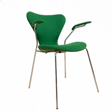 Sedia Serie 7 3207 con braccioli in imbottitura di lana e metallo di Arne Jacobsen per Fritz Hansen, anni '80