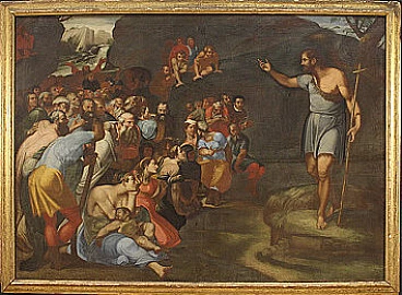 La predica di San Giovanni Battista, grande dipinto italiano olio su tela, fine '500