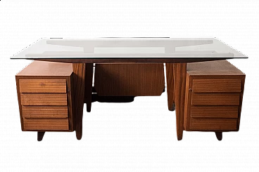 Scrivania del Politecnico di Torino in legno piano in cristallo satinato anni '60