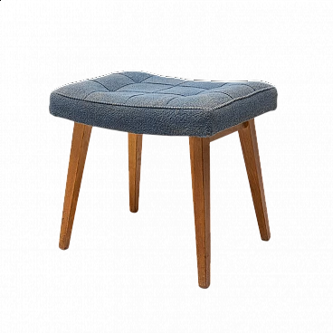 Questo sgabello/poggiapiedi è stato realizzato nell'ex Cecoslovacchia nel 1960. Presenta una seduta imbottita e la struttura è in legno di faggio. In buone condizioni originali, il tessuto mostra i segni dell'età e dell'uso, una leggera sbiaditura.