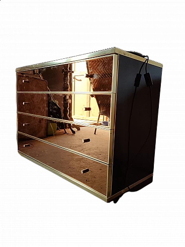 Bellissima cassettiera degli anni 70 in legno laccato, metallo ottonato e vetro specchiato, condizioni generali ottime, qualche segno di usura del tempo.