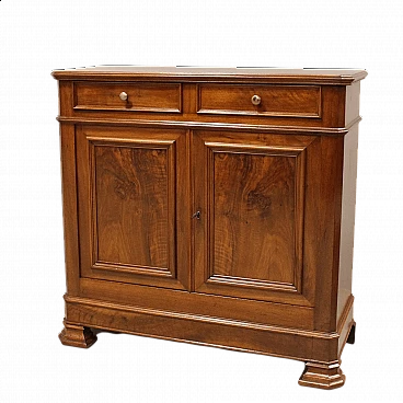 Credenza in stile Luigi Filippo in noce massello con due ante a battente e due cassetti nel sottopiano.