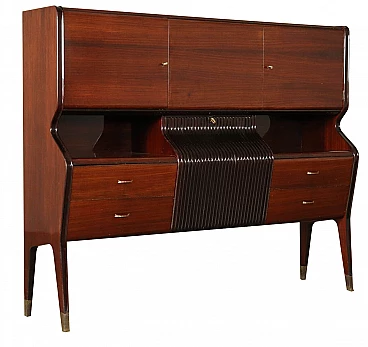 Mobile bar con interno ricoperto a vetri a specchio, legno impiallacciato in palissandro, grissinatura ebanizzata, puntali in ottone. Produzione: Atelier di Varedo (Borsani)