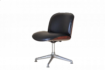 Poltrona degli anni 70 con seduta in pelle di bovino color nero e struttura in acciaio e palissandro, Ico Parisi per iconica azienda italiana MIM Roma.. Sedute girevoli a 360 gradi. Completamente restaurata, in ottime condizioni con patina del tempo e segni del tempo.