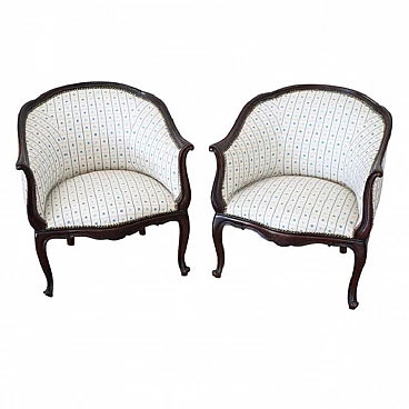 Coppia di poltrone antiche in noce restaurate, primi sec. XX
