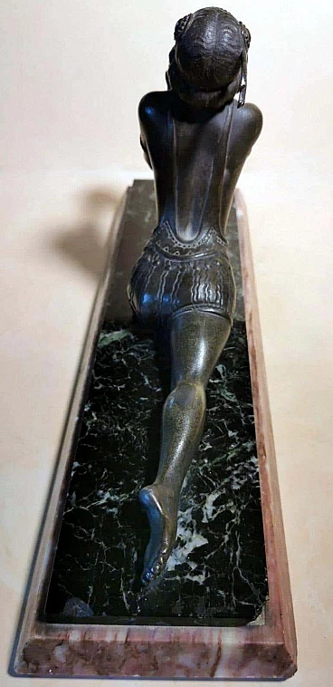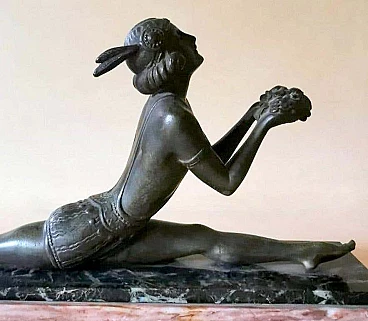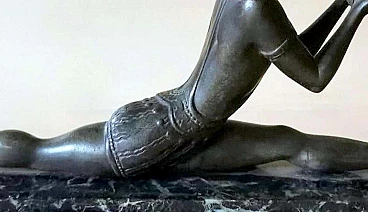 Statuetta in stile art noveau raffigurante giovane ballerina in bronzo con base in marmo, anni '20