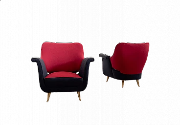 Coppia di poltrone imbottite in tessuto e gambe in ottone di Isa Bergamo, anni '50.