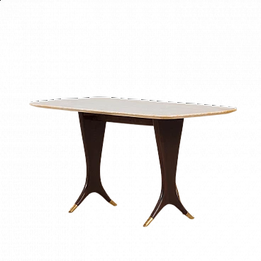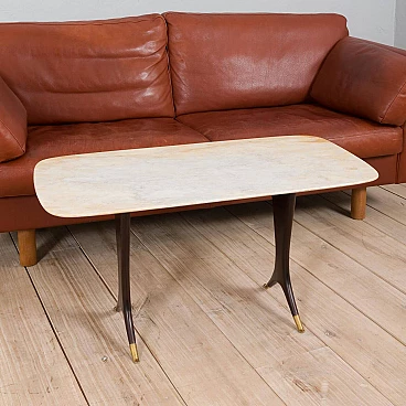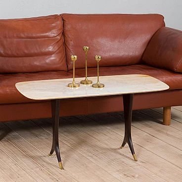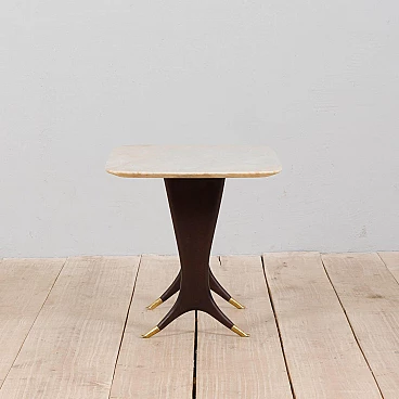 Tavolino in mogano massiccio con piano in marmo e piedi in ottone di Guglielmo Ulrich, anni '50