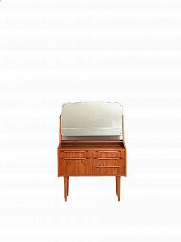 Mobile da ingresso scandinavo in teak con specchio, anni '50