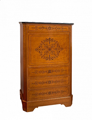 Secretaires francese Carlo X con piano in marmo nero, '800