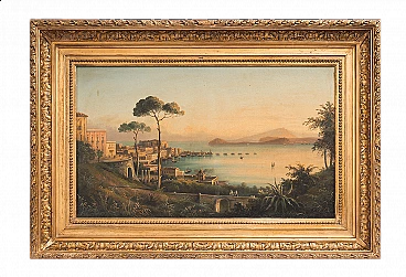 Veduta sui Campi Flegrei, dipinto napoletano olio su tela, '800